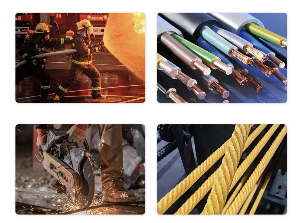 Sekitar 100℃ lebih tinggi dari aramid |